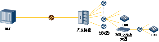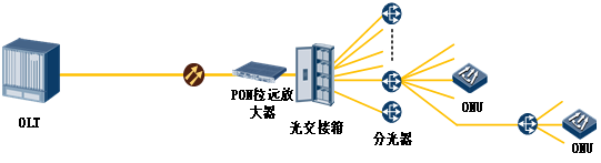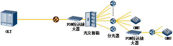 用户较多的繁华区域,在OLT和ONU之间的光纤链路中增加PON拉远放大器,通过单路PON拉远,实现业务覆盖。