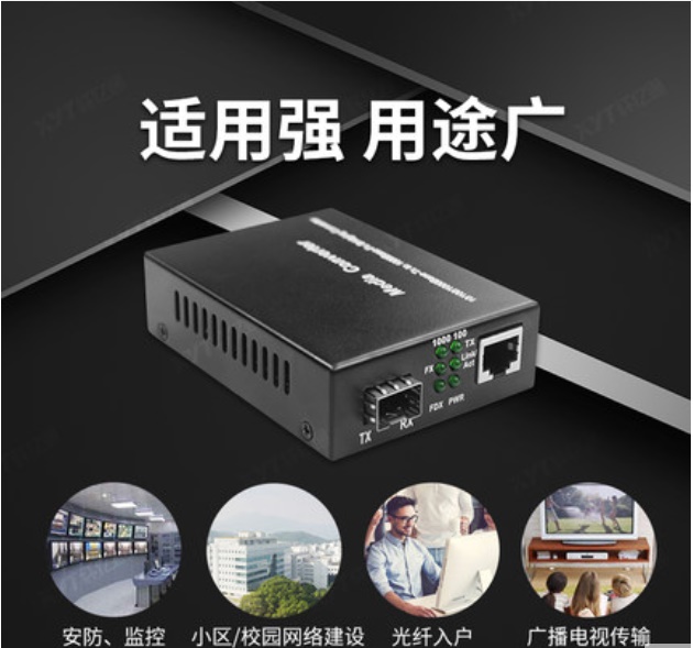 所谓光纤收发器是指一款能够进行光电转换的通信设备。在网络建设及应用中,由于网线最大的传输距离一般为100米,而光纤传输距离远远高于100M,多模光纤最远能传2km,单模光纤无中继最远支持120KM。因此建设长远距离通信传输网络的时候光纤收发器等光通信设备成为最有力的助手。光纤收发器一般应用在工业区、生活小区,以及中大型企业内网等以太网电缆无法覆盖、必须使用光纤来延长传输距离的实际网络环境中。应用光纤收发器,可以增大传输距离,节省空间,即插即用,方便快速组网等特点。下图为纤亿通一光一电光纤收发器,体积小,无需配置数据,插上就能通,当然也要注意光纤的收发光,一发一收两芯光纤不可以插反,如插反了互换一下就可以轻松开局,其应用场景如下图所示: