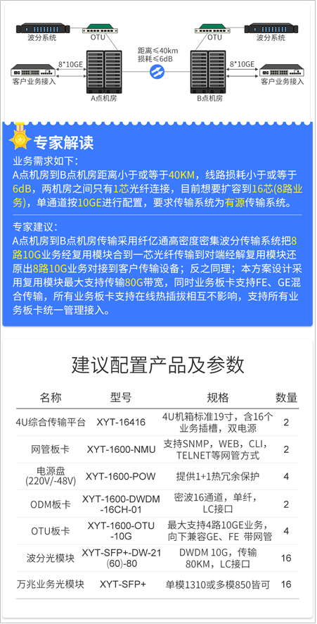 随着“新基建”时代来临,数据中心的发展将进入高增期。纤亿通科技目前参与了众多光纤传输网建设项目,同时提供了上千种各大、中、小型数据中心光传输组网解决方案,积极助力新一代数据中心产业建设。