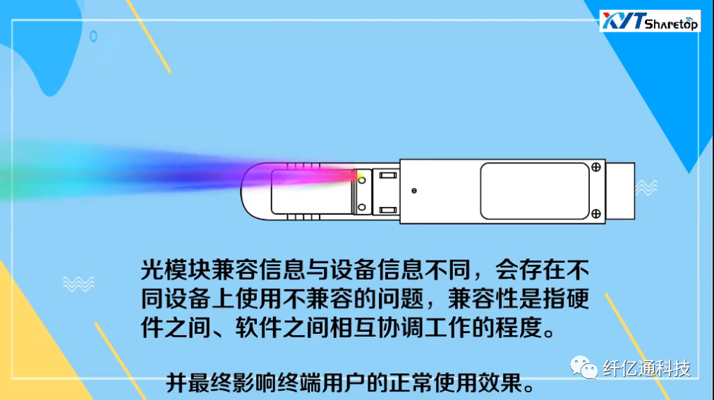 在购买时应与商家确认模块的兼容性,否则可能会导致光模块在使用过程中温升异常、信号损耗大、信号闪烁等问题,并最终影响终端用户的正常使用效果。