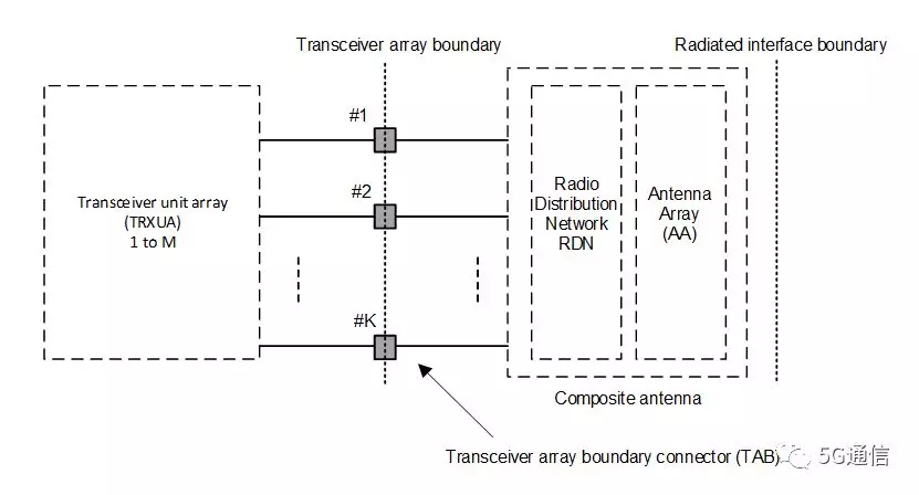 传导特性在收发器阵列边界处的单个或一组TAB连接器处定义,收发器阵列边界是收发器单元阵列和复合天线之间的传导接口。