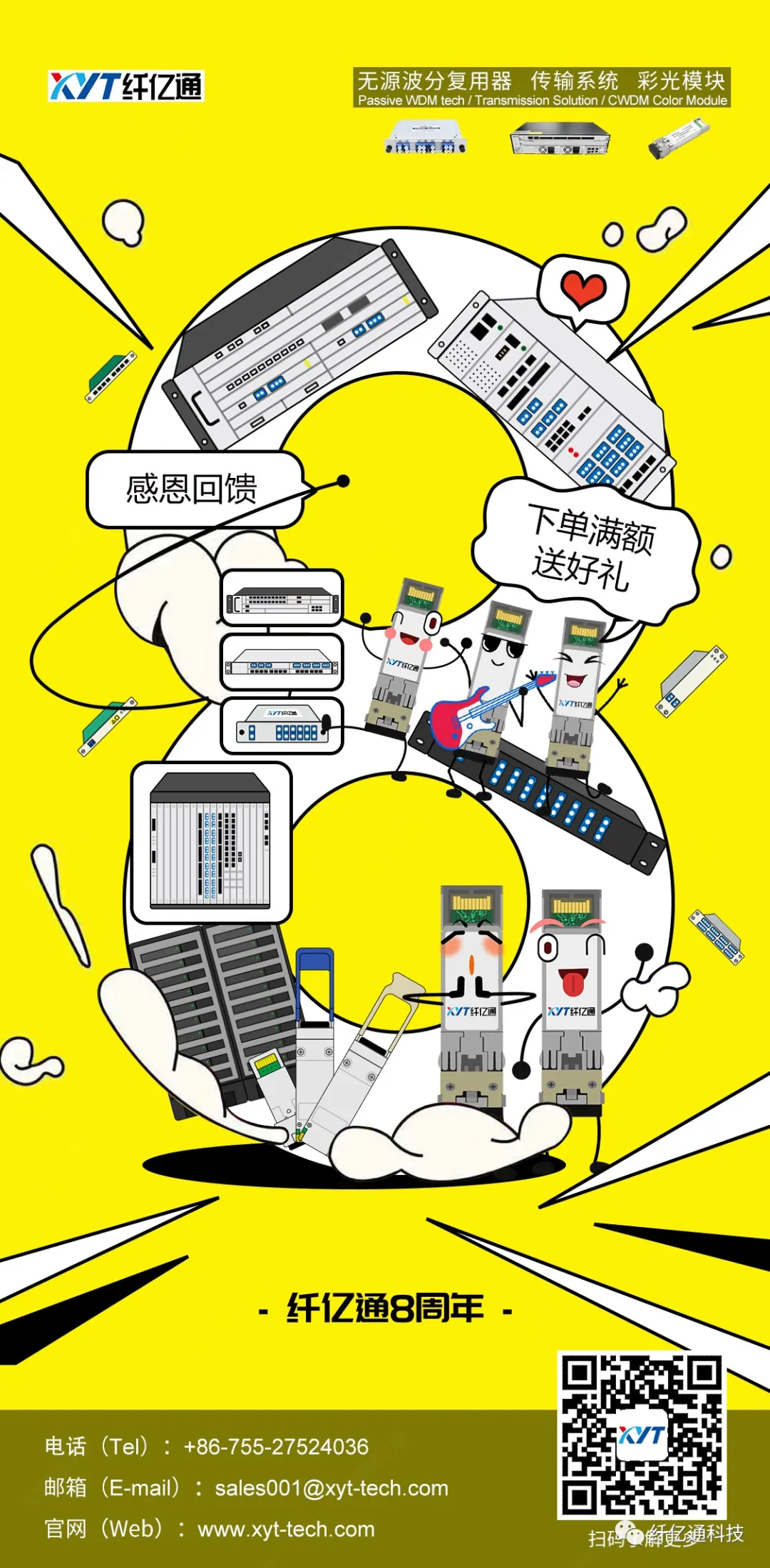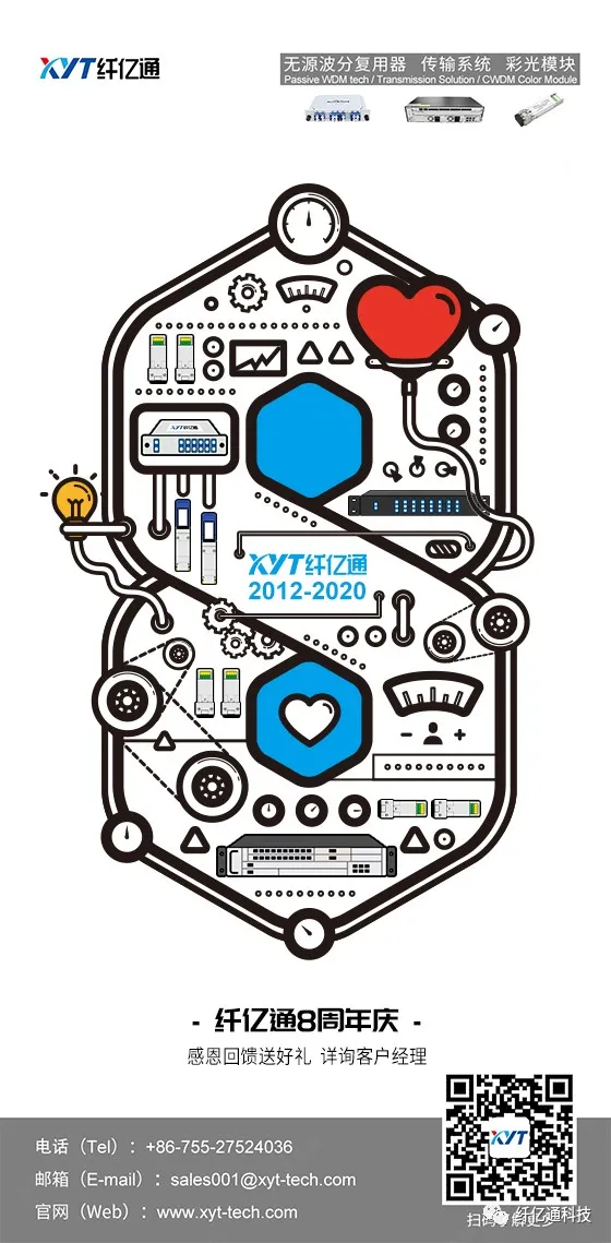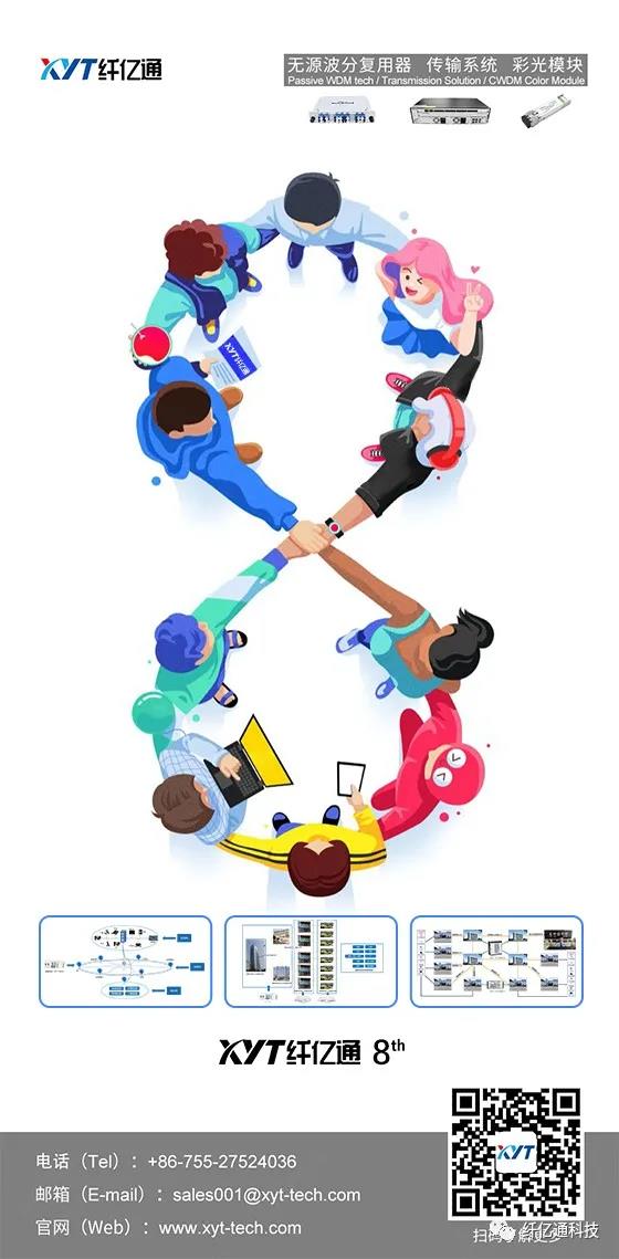 峥嵘八载,亿行千里。2020年8月30日,深圳纤亿通科技迎来了第8个岁月。八载芳华,纤亿通始终坚持以科学生产为第一生产力、始终坚持自主创新,在光通讯5G、数据中心、光传输等网络传输建设领域取得了重大成果,达到了全国领先水平。
