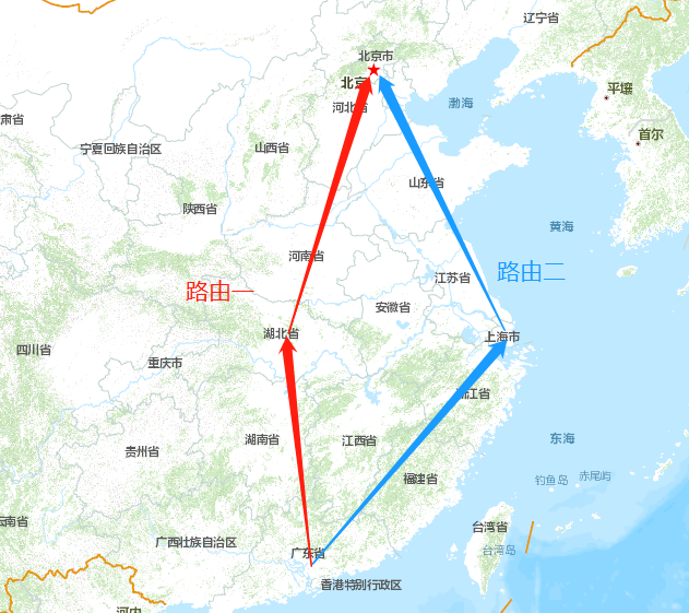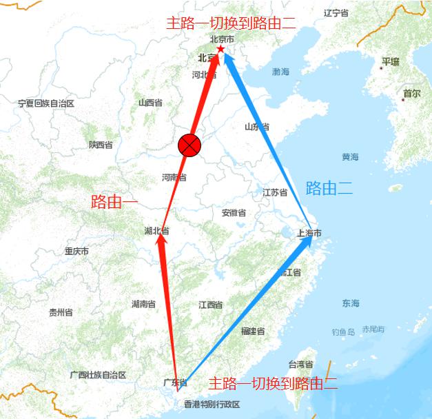 双路由就是两条不同的光缆从A机房到B机房选择一条传输,当一条路出现故障、自然灾害时,就会选择另一条路传输。比如A机房在广州,B机房在北京,路由一为广州-武汉-北京,路由二为广州-上海-北京,光缆就相当于水管,一般情况下我可以从广州出发到武汉再到北京,当这条路出现问题,比如水管断了,这个时候我就走路由二,给予路由一充分的维修时间。
