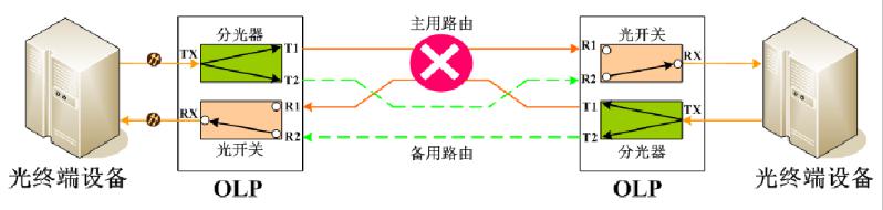 OLP即光纤光纤线路自动切换保护装置,如果光缆比做水管,水是数据流量,那么OLP就相当于一对阀门,您即可以手动切换流向,也能让它自动切换保护。简单来说就是先设一个优先的路由,比如路由一距离就短为主路,路由二距离长,不常用作为备路,当路由一发生不可控的灾难、老化或者人为损坏时,两端的OLP能在25ms内快速切换到备路,保持数据流量的稳定连续性。