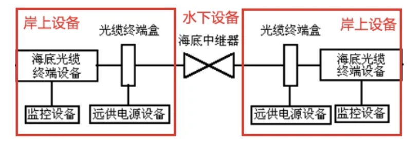 一直以来,它因埋藏于海底深处而披上神秘面纱,今天我们带你走进海底光缆的世界。海底光缆与陆地光缆一样,里面是头发丝大小的纤芯,不过,海底光缆需更为加强的铠装保护,且还有一个重要的组成部分——远供电源导体,它将电输送到海底中继器。远供导体和海底中继器到底是什么关系?我们先来看看海底光缆系统组成。