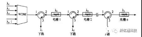 图3 光环形器和光纤光栅组成的DWM解复用结构
