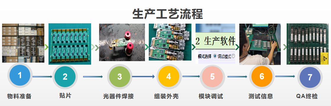 ①物料准备:全部采用全新原装芯片物料、光器件,全新高质量金属外壳设计。