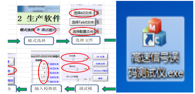 ⑤模块调试:生产软件调试,灵敏度测试等,主要用到高速信号误码测试仪,调试和测试灵敏度可以同时进行,只需按照灵敏度测试文件打开对应配置即可。