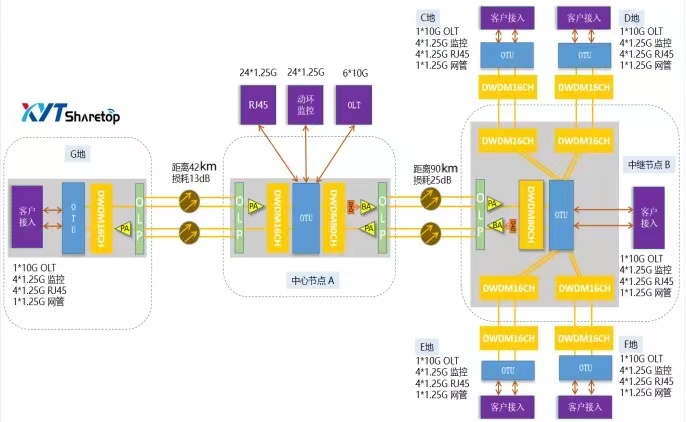 4. 线路损耗高的站点添加EDFA光纤放大器,实现长距离通信。