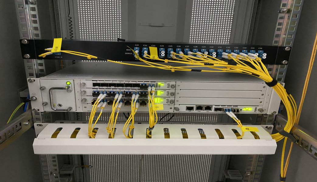 此次研究院专网升级改造项目,由深圳纤亿通科技有限公司进行承接改造,在该研究院的直接领导和支持配合下,完成了从方案沟通与设计、项目招投标、设备安装调试、运行验收的各项工作。该项目的从布线到设备硬件软件的安装及调试均有纤亿通负责提供和安装调试。项目包括4U机框 XYT-16416、2U机框 XYT-16208、XYT-1600-BA光纤放大板卡、XYT-1600-PA光纤放大板卡、XYT-1600-DCM色散补偿板卡、XYT-1600-OLP光线路保护板卡等。