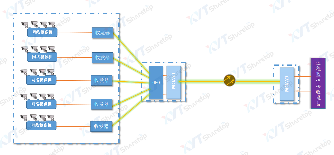 3. 把附近监控的视频信号先在站点汇聚再进入波分,从而节省波分通道;