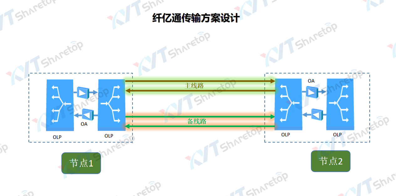 1. 纤亿通给客户配置XYT-OLP-1+1光线路保护设备,1+1双路由自动倒换,ms级别切换;