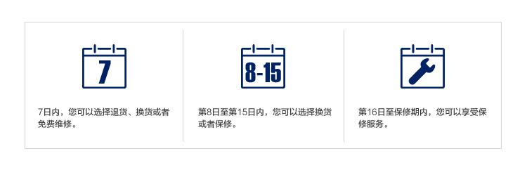 购物15天以外且在保修期内 | 所有问题 | 第三方 | 服务免费 | 1.人为原因除外 |