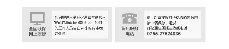 纤亿通销售商品均为正品行货,可按厂商售后政策,享受相应的保修、更换、维修和保养服务。