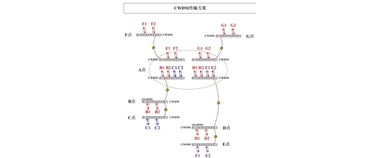 2.此方案在F、G两点分别只用一芯光纤,可为客户留出一芯用作备份或者扩容。