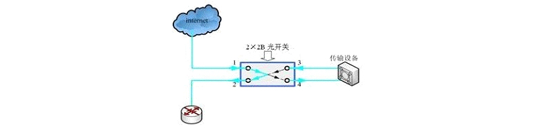 5.节点掉电业务保护方案:每个节点在无源输入输出端并用一只2×2非锁定式光开关,保护原理图如下: