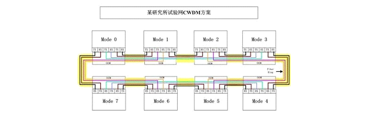该实验网有八个节点,由一芯光纤串联成环网。