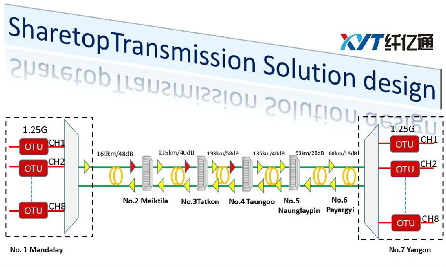 After Sharetop enngineer two weeks of work, successfully set up a solution for multinational thousands of kilometers of optical wavelength division multiplexer system, 16-way business through two optical fiber transmission, all connected