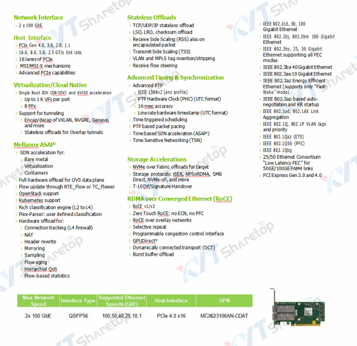 ConnectX-6 Dx delivers another level of innovation to enable building highly efficient virtualized cloud data centers:>Virtualization – Mellanox ASAP2 technology for vSwitch/vRouter hardware offload delivers orders of magnitude higher performance vs. software-based solutions. ConnectX-6 Dx ASAP2 offers both SR-IOV and VirtIO in-hardware offload capabilities, and supports up to 8 million rules.>Advanced Quality of Service – Includes traffic shaping and classification-based data policing.