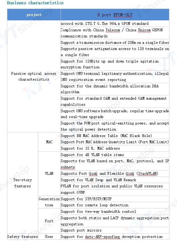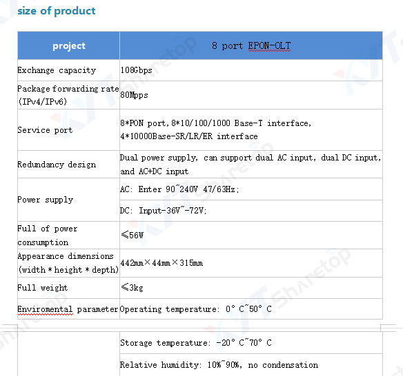 8-port EPON-OLT is a cassette GPON-OLT exchange device developed by Shenzhen Sharetop Technology Co., Ltd., providing 8 downside EPON ports, 4 uplink GE optical ports+4 upside GE ports, with an extended slot that can be connected to 210,000 megabytes SFP+ ports.Height is only 1U, easy installation and maintenance, save space.With industry advanced technology, strong capabilities and QoS guarantee in the Ethernet business, the support for SLA and DBA.The optical ratio of 1:128 supports the hybrid network of different types of ONU, minimizing the investment of operators.