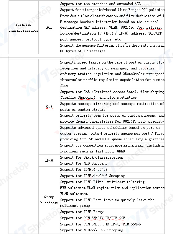 6.Rich business functions, fully support the second-floor business functions.With advanced functions such as flexible QinQ and QoS, ACL supports L2~L7 in-depth 80-byte message filtering of IP messages, to provide high-quality QoS service quality guarantee for multi-business operation.