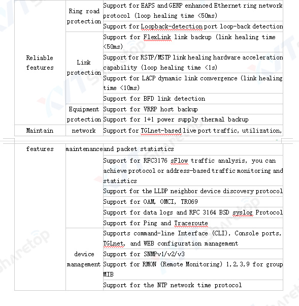 4.Support rich Ethernet functions, with effective isolation guarantee mechanism, VLAN isolation, protection port, MAC address binding, IP address binding, port speed limit, queue technology, flow control technology,etc.For the technical guarantee of multi-business integration.
