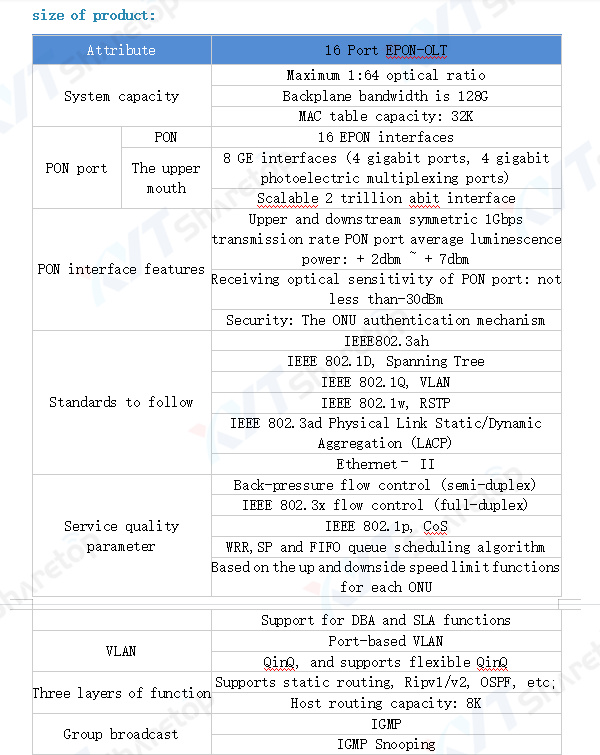 16 port EPON-OLT is a box OLT exchange equipment developed by Shenzhen Sharetop Technology Co., Ltd., providing 16 EPON OLT interfaces, 4 10 / 100 / 1000 Base-T photoelectric reuse interfaces, 210,000 Base-SR/LR/ER interfaces, the height is only 1U, convenient installation and maintenance, and the space saving.NTW-E18016C uses industry-advanced technology with strong features and QoS guarantees in the Ethernet business, with SLA and DBA support.The optical ratio of 1:64 supports the hybrid network of different types of ONU, minimizing the investment of operators.