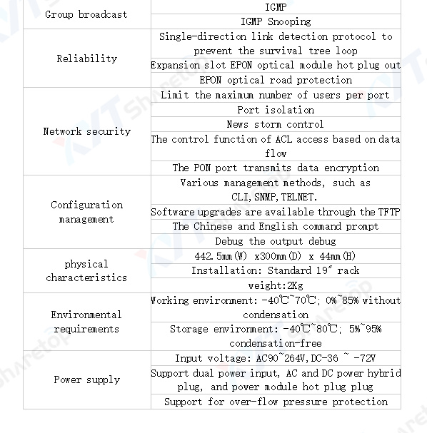 4.Support rich Ethernet functions, with effective isolation guarantee mechanism, VLAN isolation, protection port, MAC address binding, IP address binding, port speed limit, queue technology, flow control technology, etc. For the technical guarantee of multi-business integration