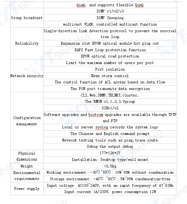 11.Rich OAM feature design, including configuration, alarm, performance monitoring, fault isolation, and security management, which provides remote management through OLT and supports local console management