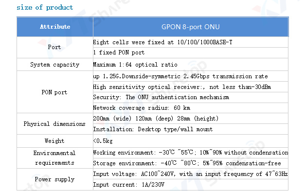 The GPON 8 port ONU devices are following the ITU-TG.984.x and the MDU equipment of the People's Republic of China (YD/T 1475-2006), integrating Ethernet switch function and optical network unit ONU function, can be organically integrated with Fibweitong OLT products to form efficient GPON solutions.Can very well meet the application of radio and television two-way network, operator FTTO/FTTB.