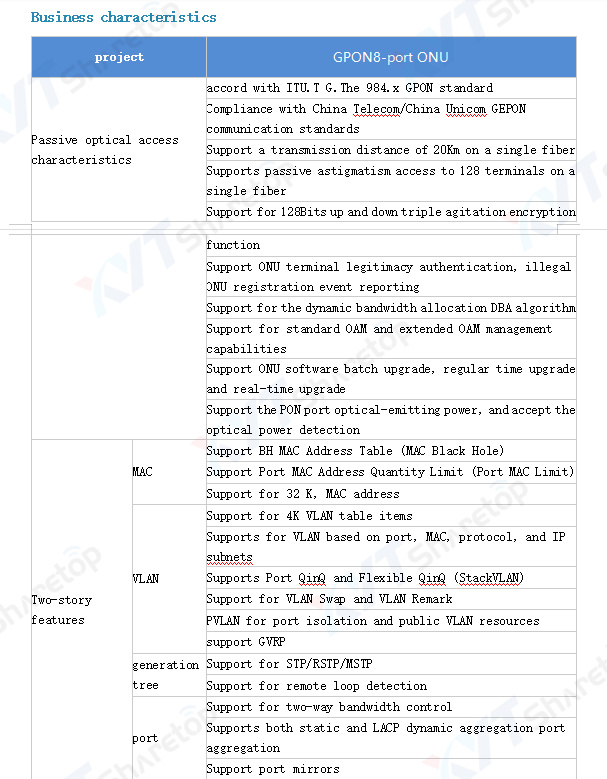 2.Dynamic bandwidth distribution mechanism enables all users to more reasonably share up 1.25G, downside 2.45Gbps bandwidth, achieving reliable quality of service (QoS), ensuring the quality of service of different businesses in the same network