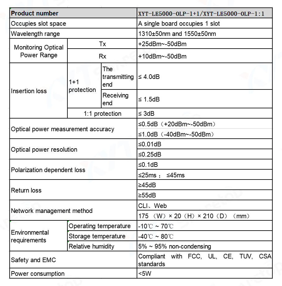 XYT-LE5000 series is a new generation of optical transmission system launched by Fibertone Technology. The system has high business integration, high port density, rich types of accessible services, flexible configuration, and supports a graphical management interface based on SNMP protocol. Remote management, function settings, and real-time monitoring of the working environment temperature, working voltage, redundant power backup status, and cooling fan working status of the central office rack. Provides very clear fault location for management and maintenance, saving maintenance costs.