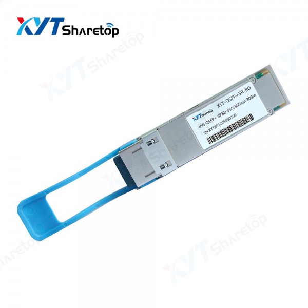 The 40g launched by xianyitong technology meets the qsfp MSA standard and adopts highly reliable lasers with transmission distances of 100m, 300m, 1.4km, 2km, 10km, 30km, 40km and 80km. It can be hot swapped, with built-in digital diagnosis function and low power consumption. This model is qsfp+sr-bd, with transmission wavelengths of 850nm and 900nm. It has two 20gbps optical signal receiving and transmitting channels, and each signal channel can simultaneously transmit and receive different transmission wavelengths through a multimode fiber. The product features are as follows: