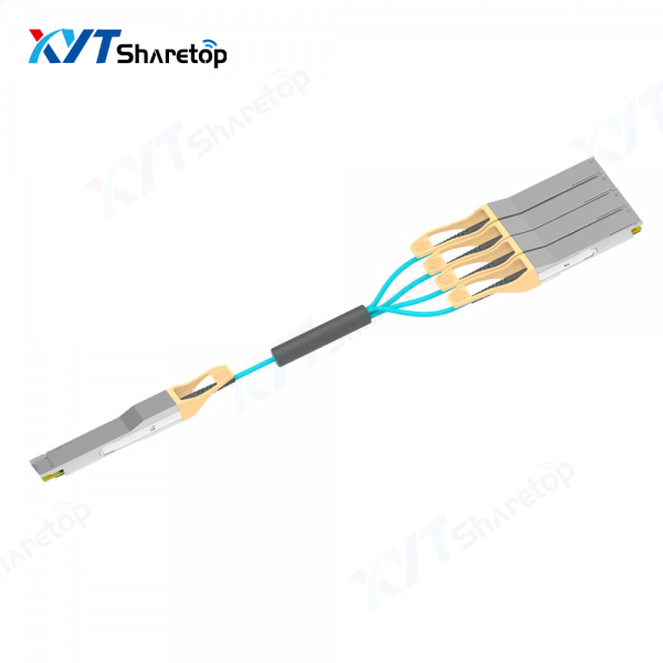 Common AOC speeds of active optical cables include 10g, 25g, 40g, 100g, 200g, 400g, etc. This model is xyt-400g-qsfp56-dd-4x 100g-qsfp56-aoc, which is used for the 400g to 4-way 100g Ethernet branch link in the data center. The interconnection distance up to 70m (OM3) or 100 (OM4) can be realized through multimode optical fiber (MMF). The product features are as follows:
