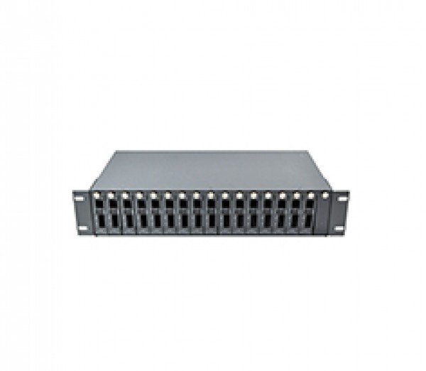 The Chassis-based Media Converters include a number of independent media converters and a chassis capable of housing up to 16 media converters.You can start with single media converters,each equipped with its own housing and AC power adapter.When your requirements grow big,you can mount a chassis in your equipment rack and install your media converters in the chassis.The housing of each media converter can be easily removed,and the media converter PC board can be slid into the chassis.