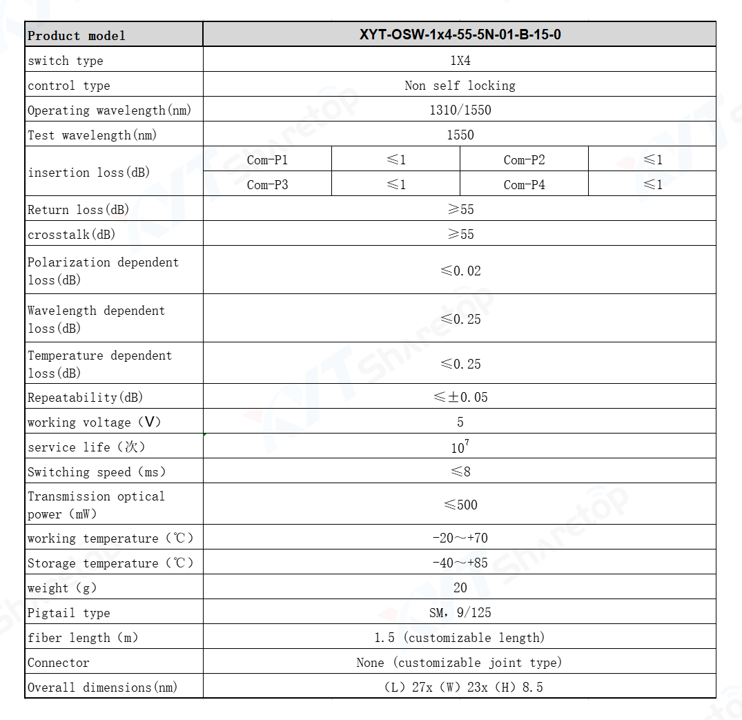 The optical switch of Shenzhen Sharetop Technology Co., Ltd. has one or more optional transmission ports An optical device whose function is to convert or logically operate optical signals in optical transmission lines or integrated optical paths Optical switch, optical amplifier and optical signal storage are all optical device materials. The optical switch can be operated in picoseconds (10 ^ - 12 seconds). At present, it is based on lithium niobate and gallium aluminum arsenic compounds, which are derived from the electronic industry. Some new materials, such as liquid crystal and polyacetylene, have better optical effects than lithium niobate.