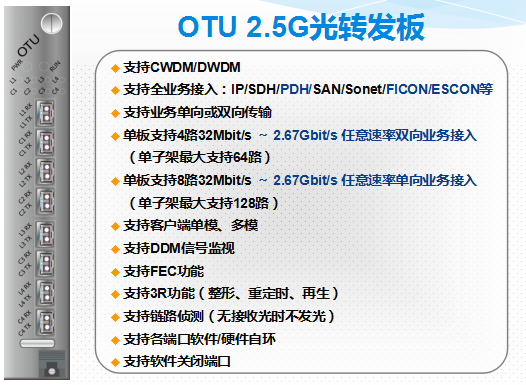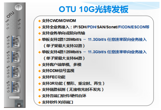 7) Optical interface converter (OTU):converts conventional SDH singnals into suitable for DWDM transmission signals .