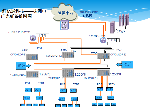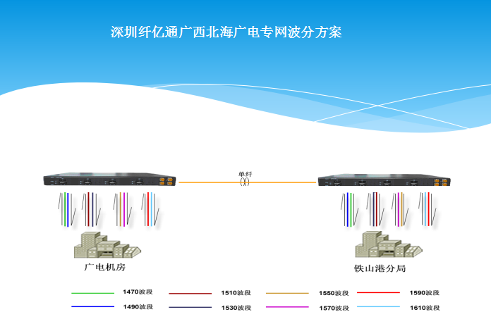 ③ equipment networking flexibility, wavelength division multiplexing equipment can be composed of point to point, point to multipoint, chain, ring, single-fiber one-way, single-fiber two-way network topology.