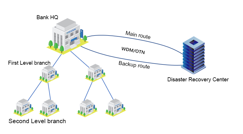one bank is gradually expanding, with increasing of payment methods, service channels, and financial services are constantly increasing. networking expansion/upgrade is imminent. At the same time, the stability and continuous requirements of network business are becoming higher and higher. In order to avoid the construction of infrastructures such as subway repairs and building construction in the urban area ,digging etc .caused the fiber cables breaken make affect for the business , so the following requirements are required: