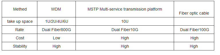 Currently, there are three transmission methods, WDM WDM, MSTP multi-service transmission platform, and optical cable direct connection.