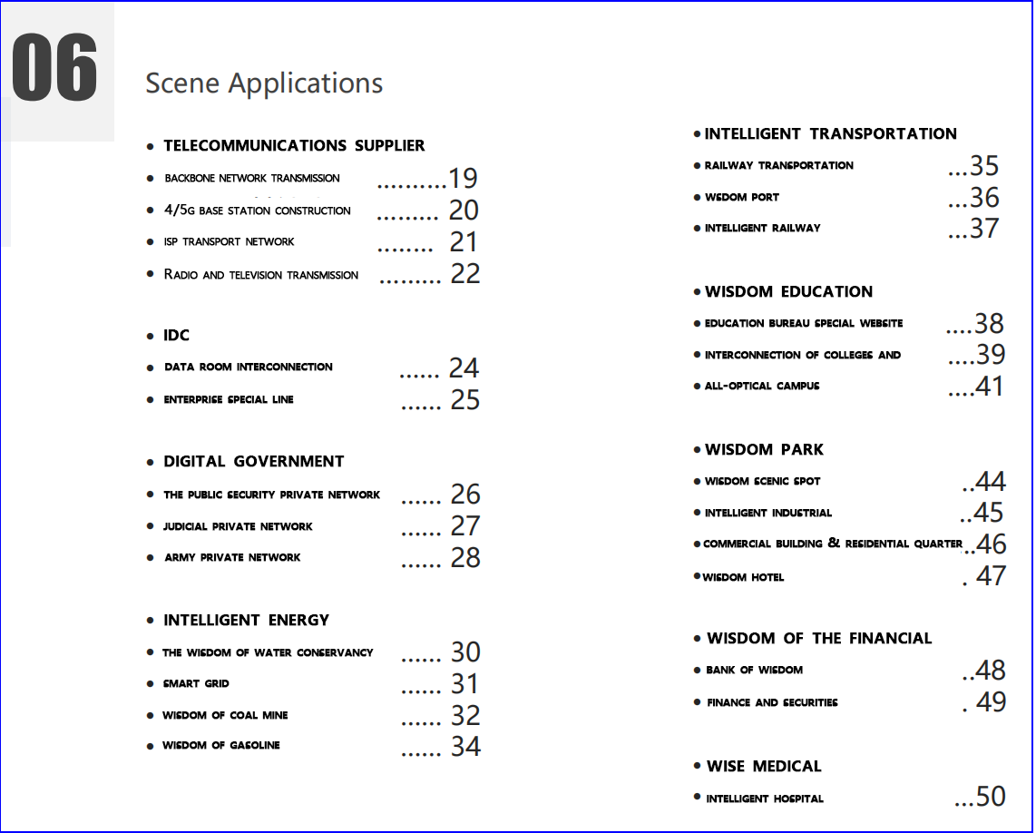Flexible use of WDM upgrade and capacity expansion solution network structure, streamline the number of customer sites, save investment; stronger business interference and interference ability; low switching delay, zero packet loss, no line loss, guaranteed delay; card scheduling, production scheduling, video business scheduling, priority to key business; two-way authentication to effectively prevent network attacks and protect core data security.