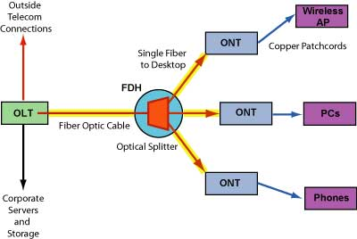 PON provides increased distance between the data center and desktop (>20 kilometers)