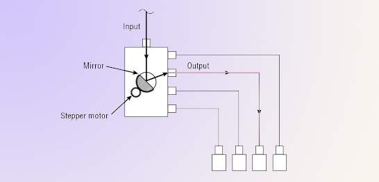 The optical switch is a technology that operates on fiber optic circuit to work similar to traditional electrical network switches. The optical switch we mainly mentioned here is operated by mechanical means which physically move fiber or other bulk optic elements. For example, the opto-mechanical switch redirected an optical signal by moving fiber by means of a mechanical device are typically stepper motor driven. It move a mirror(prisms, or directional couplers) that directs the light from the input to the desired output.