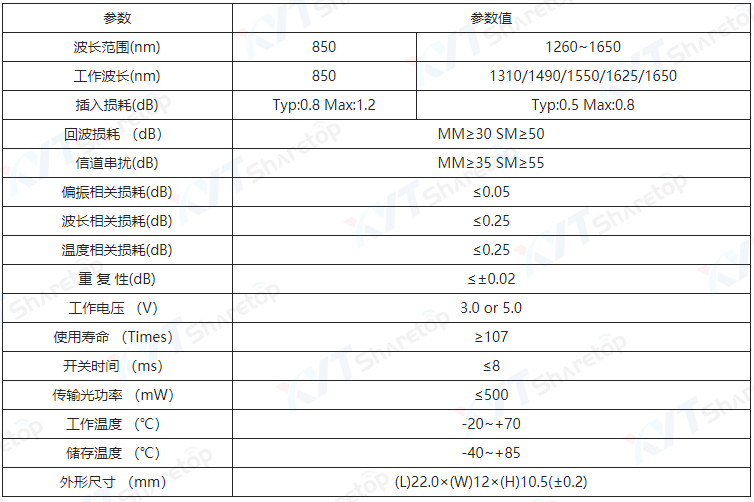 其插入损耗极低,体积小:28x12.6x11mm,是用于动态配置分插复用器OADM、交叉连接器OXC、系统监测与保护的理想器件。它波长范围宽,低信道串扰,高稳定性、高可靠性,光路无胶,纤小的封装更易于集成进高密度的光通信系统中。