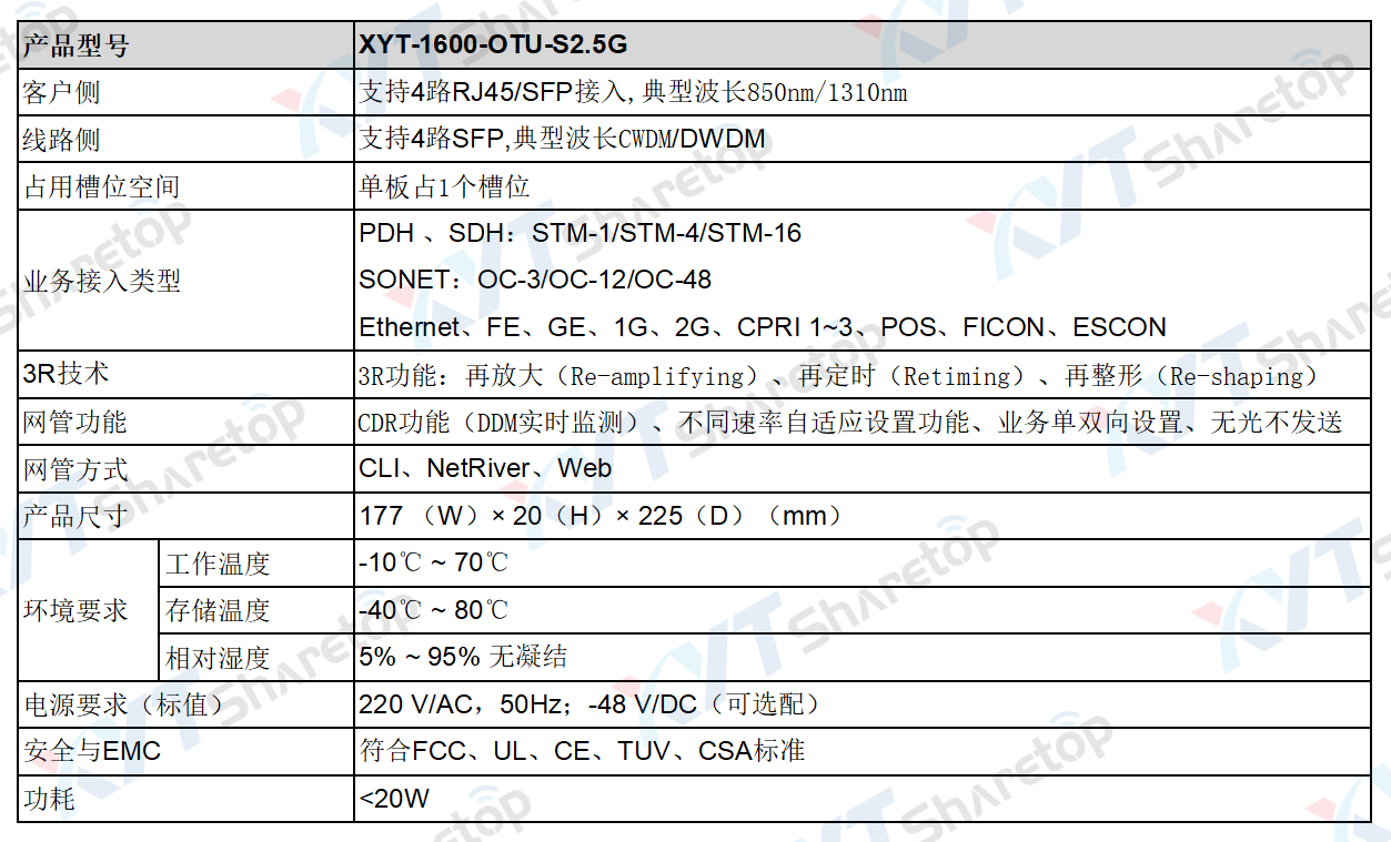 2.5G OTU板(XYT-1600-OTU-2.5G)是一款用于业务接入的功能板卡,该板卡功能强大,可实现对 155MMbit/s~2.488Gbit/s 任意速率协议的业务接入,并进行 3R 信号再生,同时可监测每一路业务光信号。广泛应用于城域网建设、政企专网建设、数据中心互联。