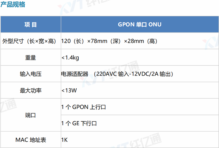 产品分类:1个10/100/1000BASE产品编号:XYT-1PON-GPON-ONU
