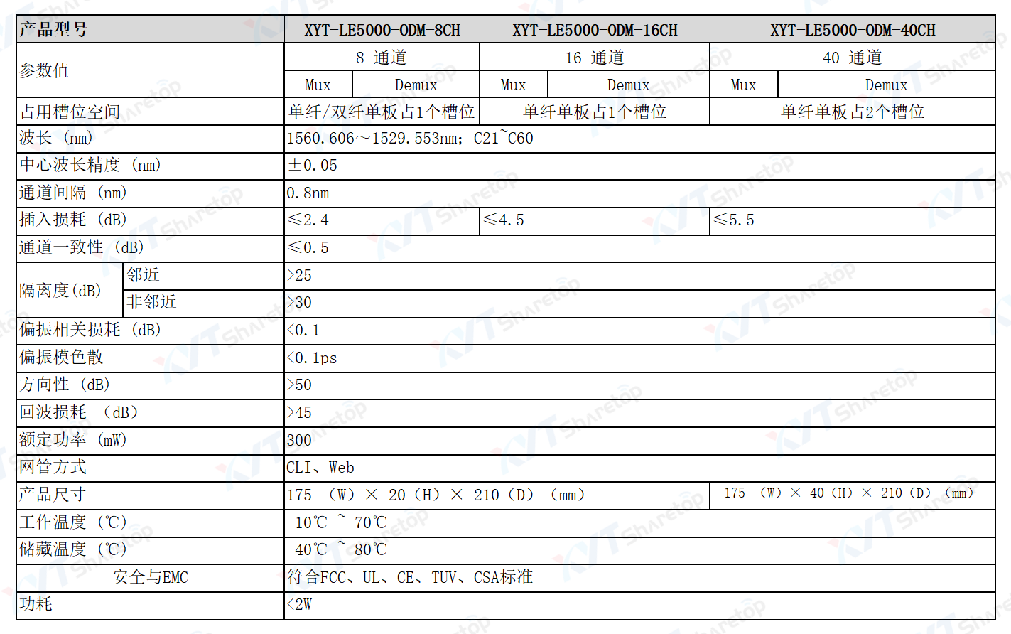 产品分类:ODW密波分复用产品编号:XYT-LE5000-ODWxx-M/D/MD