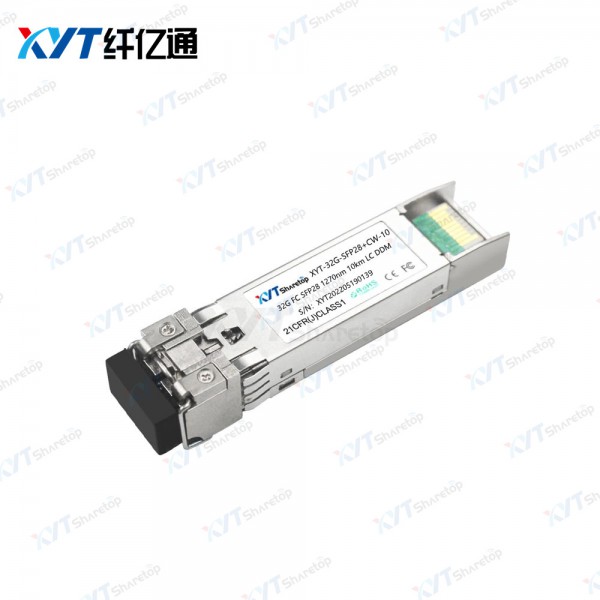 纤亿通科技推出的32G FC光模块广泛应用于存储区域网络(SAN),同时可向下兼容8G/16G光纤通道,业务模块的传输距离有:100m、10km、40km;彩光模块的传输距离有:10km。产品特性如下: