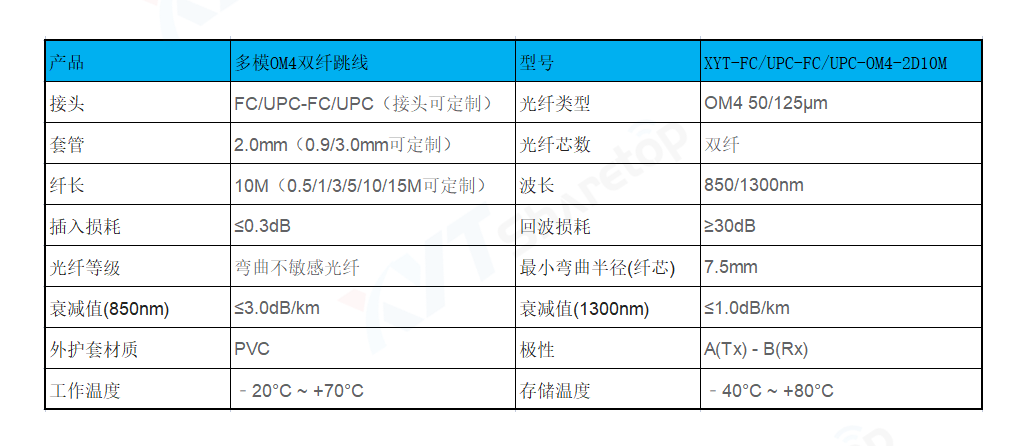 产品编号:XYT-FC/UPC-FC/UPC-OM4-2D10M