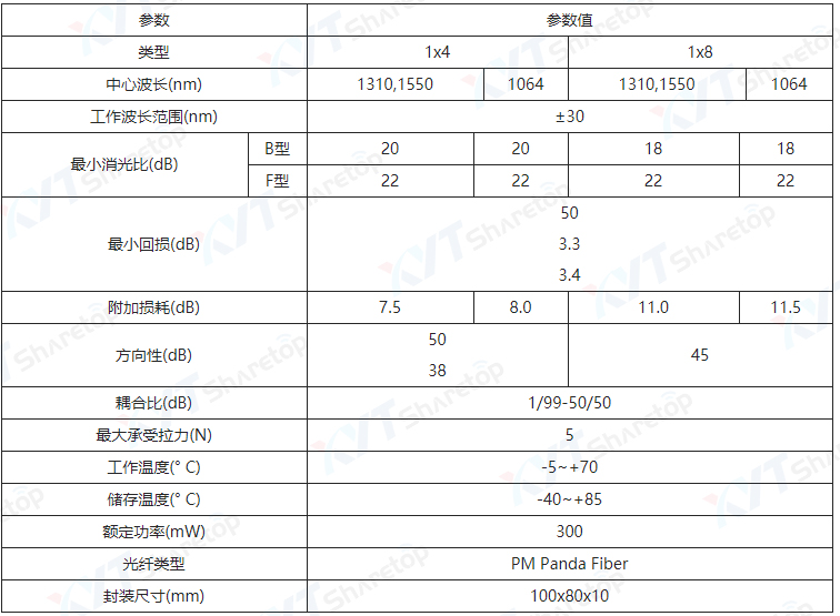 注:以上参数不包含连接头,加头损耗IL≤0.3db,RL≥5db,ER≥2db,